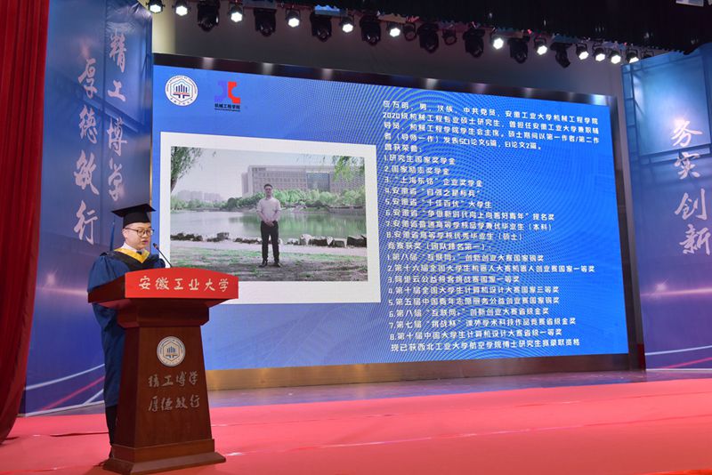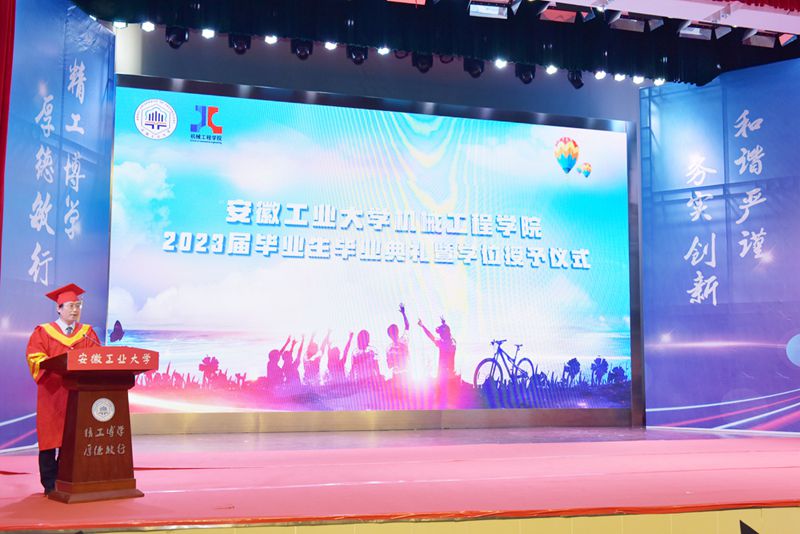 毕业典礼在庄严的国歌声中拉开帷幕。公司党委书记徐柳根宣读了2023年安徽省普通高等公司优秀毕业生、校优秀毕业生、员工联络员名单。