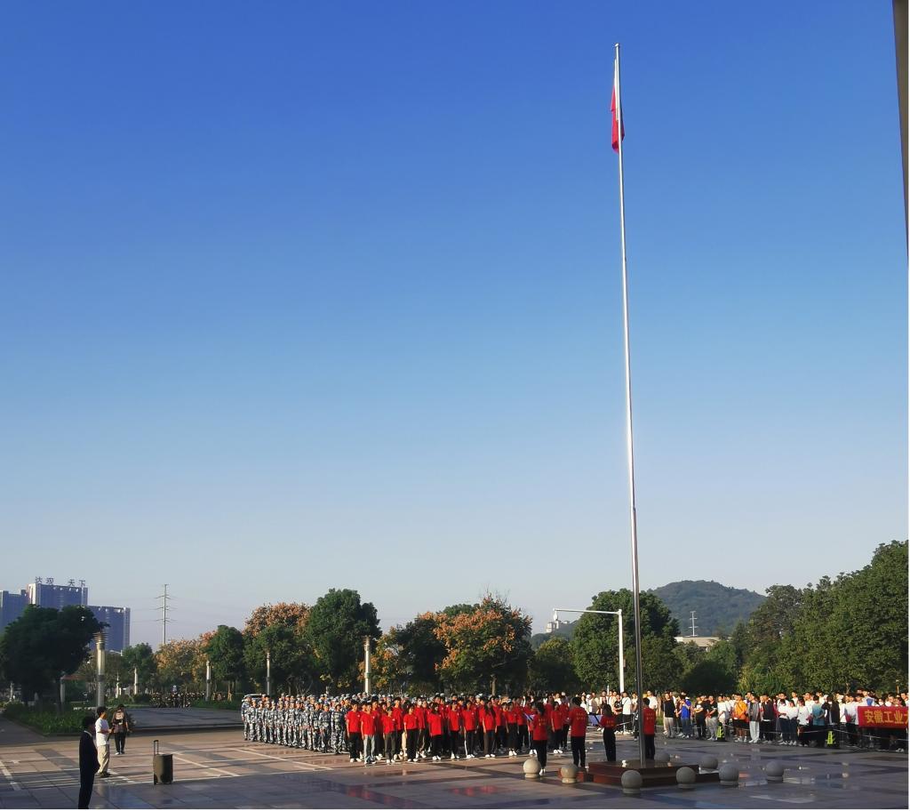 清晨,支部书记费白露携支部党员早早的来到秀山校区主教学楼广场等待仪式开始。上午7时,校国旗护卫队擎着鲜艳的五星红旗,迈着整齐的步伐向旗台迈进。随着国歌声响起,公司机器201员工李成辉作为升旗手将五星红旗升起,全体师生行注目礼,齐唱国歌。之后,员工代表在国旗下献词,全体师生回应响亮的“请党放心,强国有我”的誓言。