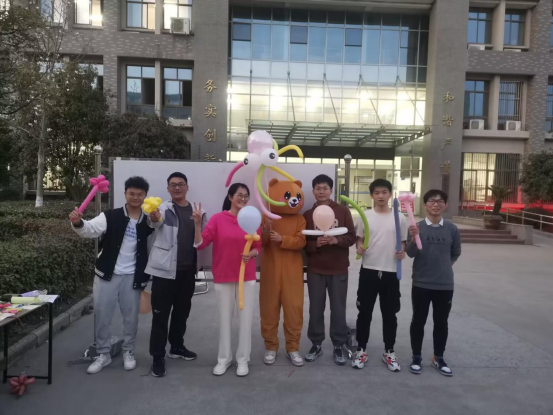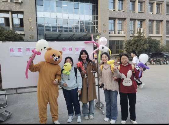 为准备充足的节日惊喜,机械公司的男生们从上午便开始活动所需的“小礼物”——气球。准备过程中,大家都非常积极,相互配合。一个个气球在他们的手中不断地变换花样,有章鱼,有花朵,还有各种卡通人物。礼物制作完成后,大家率先分别给公司的每一位女辅导员送去一个“小礼物”,在独属于她们的节日里,祝福她们节日快乐。