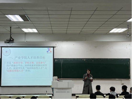 会议伊始,叶晔老师简单介绍了机器人工程专业的建设历程和发展成果。接着,叶晔老师详细阐述了机器人工程专业的两个方向(机器人方向和智能制造方向)的异同点,全面分析了两个方向的培养目标、课程设置和实习安排。此外,叶晔老师还针对马鞍山市政府提供给产业公司机器人专业(智能制造方向)员工的优惠政策进行了解读。最后,针对同学们的一些疑问和顾虑,叶晔老师现场做出了解答。