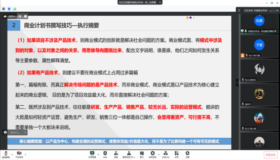培训会上,几位同学结合自己去年参赛的作品及大赛经验,从选题到撰写,从素材收集到打磨作品,详细地向同学们介绍了一件优秀作品诞生的历程,指导同学们掌握正确的思维方式,善于用思维导图的方式将一些设计理念、相关关系更形象地展示出来,增加作品的显示度和吸引力。通过几次培训,机械学子对商业计划书的撰写技巧有了更深一步的了解,这也为公司学子设计出更好的作品提供了助力。(撰稿:费白露 审核:李克明)