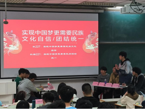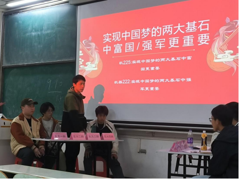 此次思辨会共分为两个论题:“实现中国梦的基石中更重要的是富国还是强军”,“实现中国梦更需要民族文化自信还是团结统一”。现场,来自2022级各班的16位辩手就辩题展开了一场精彩的辩论,为在场的每一位观众都带来了极佳的视听体验,同时也让同学们对如何实现中国梦等话题有了更进一步的思考和感悟。在紧张激烈的辩论赛结束之后,4位评委分别进行点评和打分,评选出了最佳队伍和最佳辩手。会后,现场同学也积极交流了自己的观摩感受,机224朱振国表示这场思辨会既让自己领略到了辩手们透彻的学理分析能力,也让自己认识到实现中华民族伟大复兴的中国梦绝不是轻轻松松敲锣打鼓就能实现的,新时代的伟大成就是党和人民一道拼出来、干出来、奋斗出来的,需要我们青年老员工也立足当下,勤于学习,善于思考,勇于奋斗,不辜负党和人民的殷切期望。(撰稿:费白露 审核:李克明)