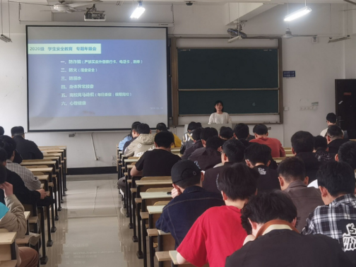 会上,两位辅导员从防范电信诈骗、宿舍安全、防火防溺水、出行安全、疫情防控、心理健康等方面,结合具体事例,用翔实的数据,为大家上了一堂安全教育课。辅导员告诫员工要时刻牢记“安全”二字,时刻关注身心健康状态,谨防上当受骗,同时强调校规校纪,叮嘱大家严格履行离校离马审批手续。最后,辅导员向大家强调期中考试临近,务必认真复习,诚信考试,严禁考试作弊。