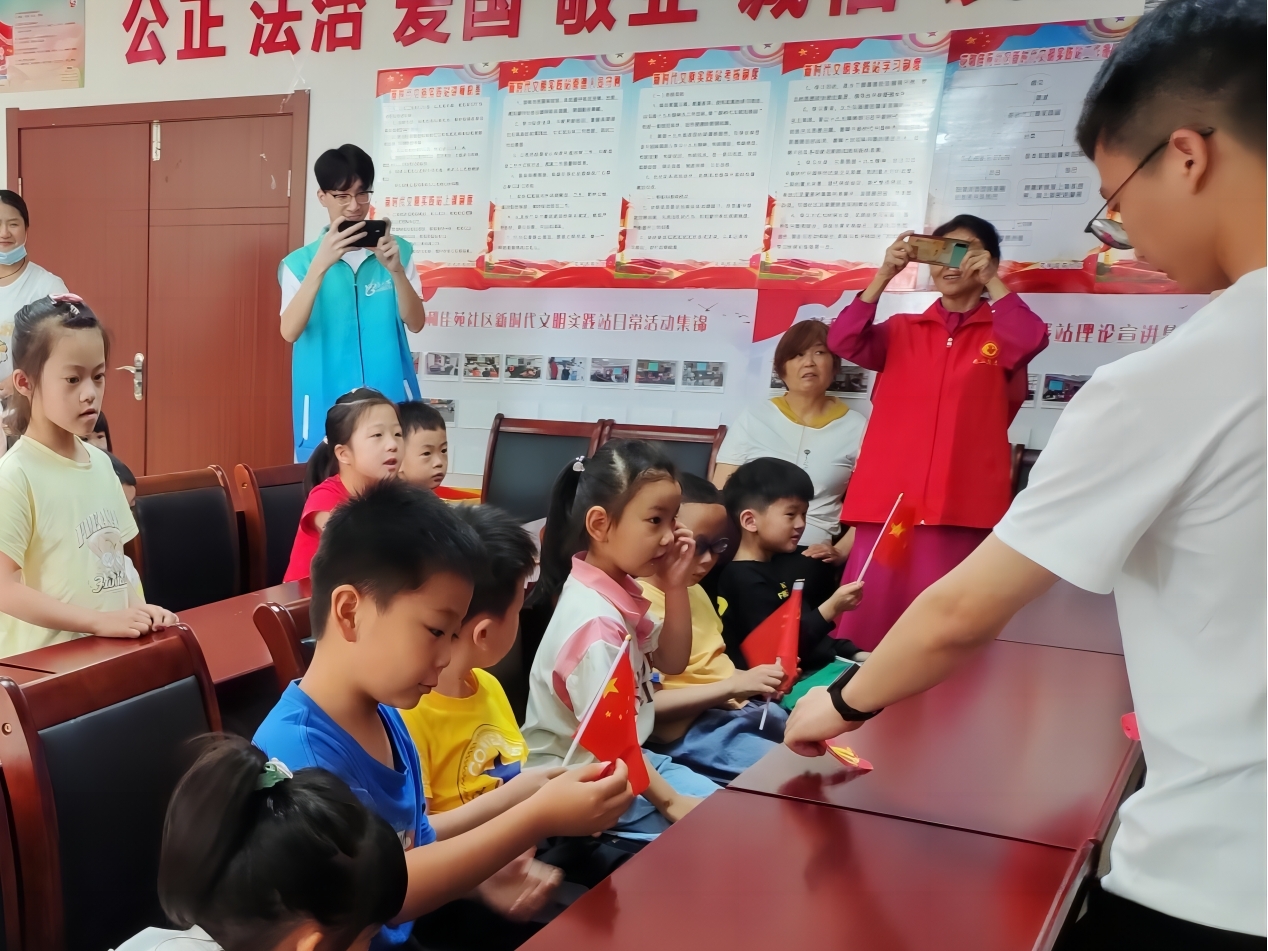 在马鞍山市马钢幼儿园,队员以井冈山国家级自然保护区的照片引入,用“童言童语”绘声绘色地讲述了《闪闪的红星》、《朱德的扁担》、《一根灯芯》等一系列少年儿童喜爱的“井冈山的小故事”。在花和佳苑社区,队员带领孩子们绘党徽,用浅显易懂的语言为小朋友们讲解党徽的由来及意义,在实践活动中了解党的内涵,吸收井冈山精神内涵营养,种下新时代革命的火种。