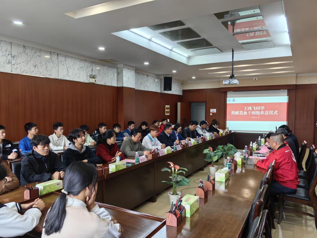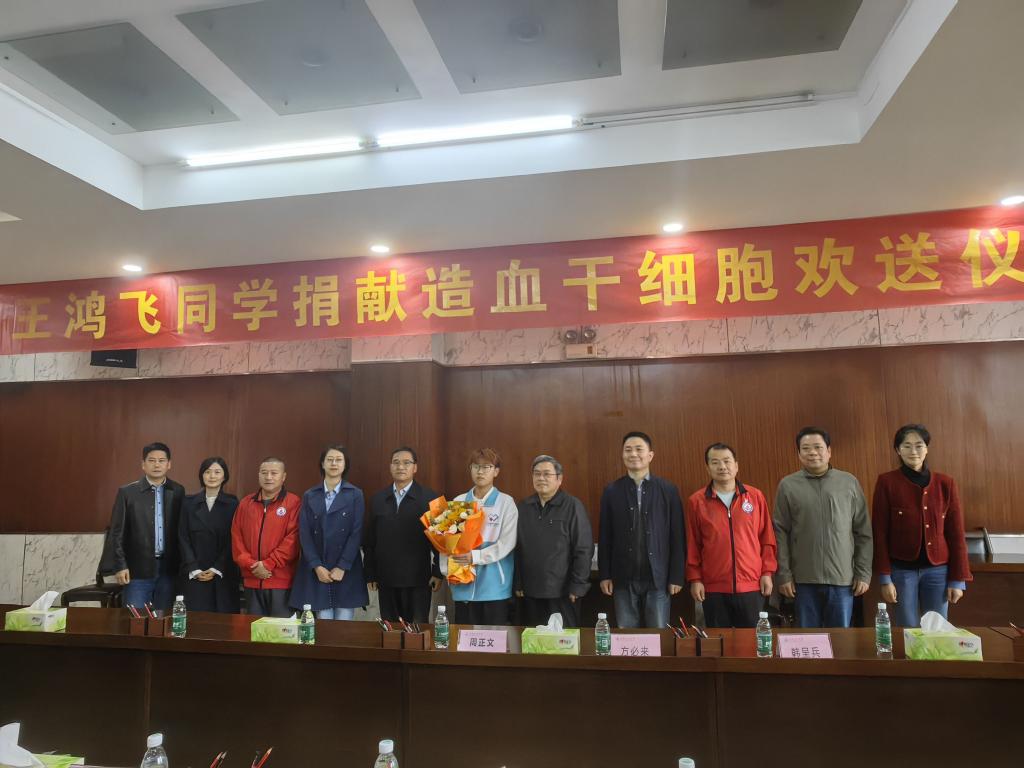 公司为造血干细胞捐献志愿者王鸿飞同学举行欢送仪式