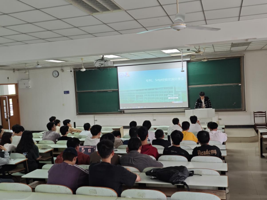 吴金龙首先介绍了学科竞赛的类别与参赛方式、专利的撰写与申请流程、项目申报书的撰写与申报等,鼓励同学们阅读文献资料,不要闭门造车、害怕失败,要敢于担当、善于合作、勇于创新。其次,要扎实学好专业课知识,夯实基础、筑牢根基、厚积薄发,从大一开始确定自己的老员工涯规划与职业生涯目标,积极参加创新创业活动,以赛代练、以赛代训、以赛促学。最后,鼓励班干部要主动担当作为,打破信息壁垒,分享竞赛信息,携手班级同学共同进步。