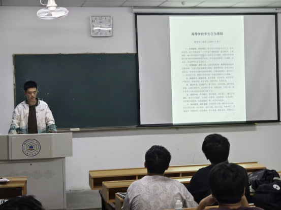 班长带领全体同学集中学习《员工手册》重要章节,主要包括员工行为规定、员工学籍管理实施细则、学业预警与帮扶管理办法、员工资助管理办法、员工违纪处分办法、“第二课堂成绩单”制度实施办法、员工公寓管理办法等内容。会议强调员工手册是员工成长、学风校风建设、班级建设的重要保障,是在校老员工应当熟知并遵守的行为准则,也是员工学习期间的服务指南,每一位同学都要认识到员工手册的重要作用。