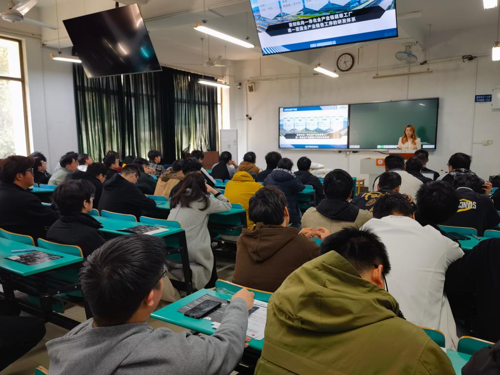 在宣讲会现场,包括公司在内的全校100多名本科生和研究生参加了活动。企业人力资源部门负责人通过PPT、视频等形式生动地展示了企业的发展历程、企业文化、产品服务以及全球化布局,并就围绕本次招聘政策、岗位详情、福利待遇、职业发展等内容进行了详细介绍。在互动环节中,同学们就专业匹配度、个人发展定位和行业发展走向等内容展开提问,招聘团队对同学们提出的问题一一进行了详细解答,现场气氛热烈融洽,得到了同学们的高度认可。