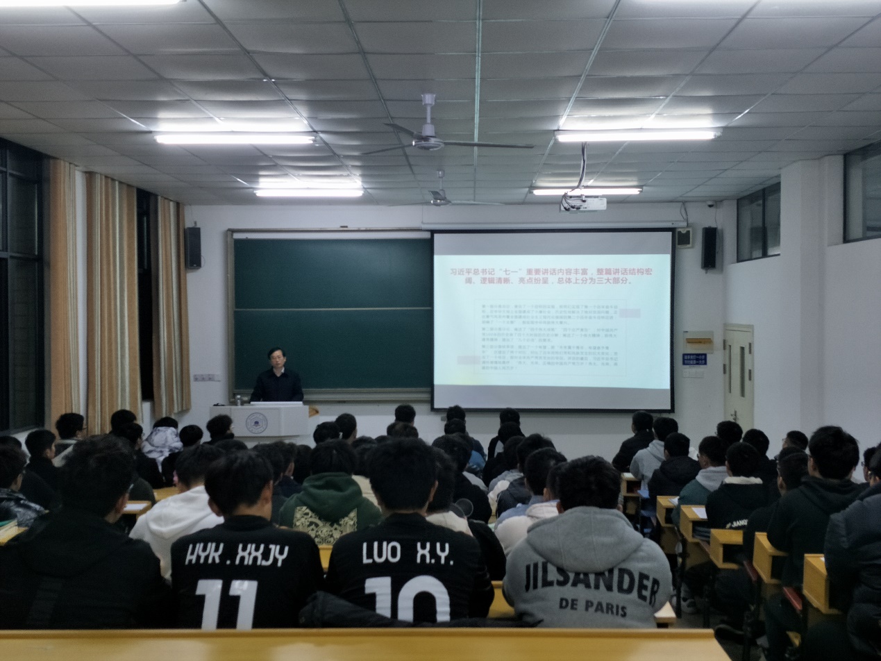 为加强对老员工的思想政治教育,帮助老员工立足国情、放眼世界,掌握正确分析形势的立场、观点和看法,公司组织开设了《形势与政策》课程。12月9日晚,董事长魏先文在TapTap点点官方网站佳山校区教一106教室以《深入学习习近平总书记七一讲话精神》为专题给TapTap点点机械工程专业2021级新生讲授形势与政策课。