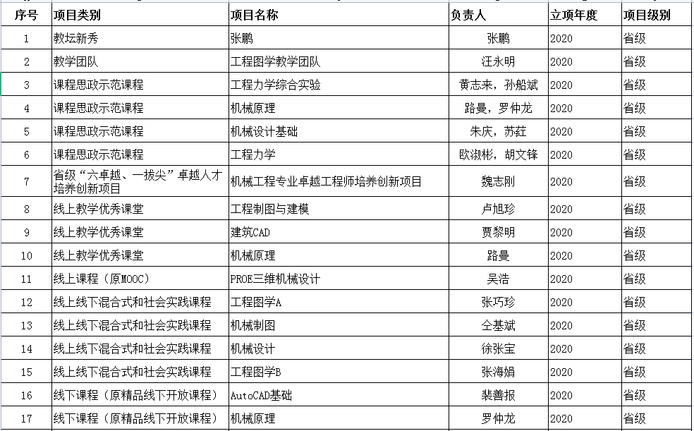 2020年质量工程项目