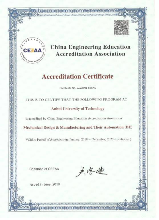 中国工程教育认证证书一