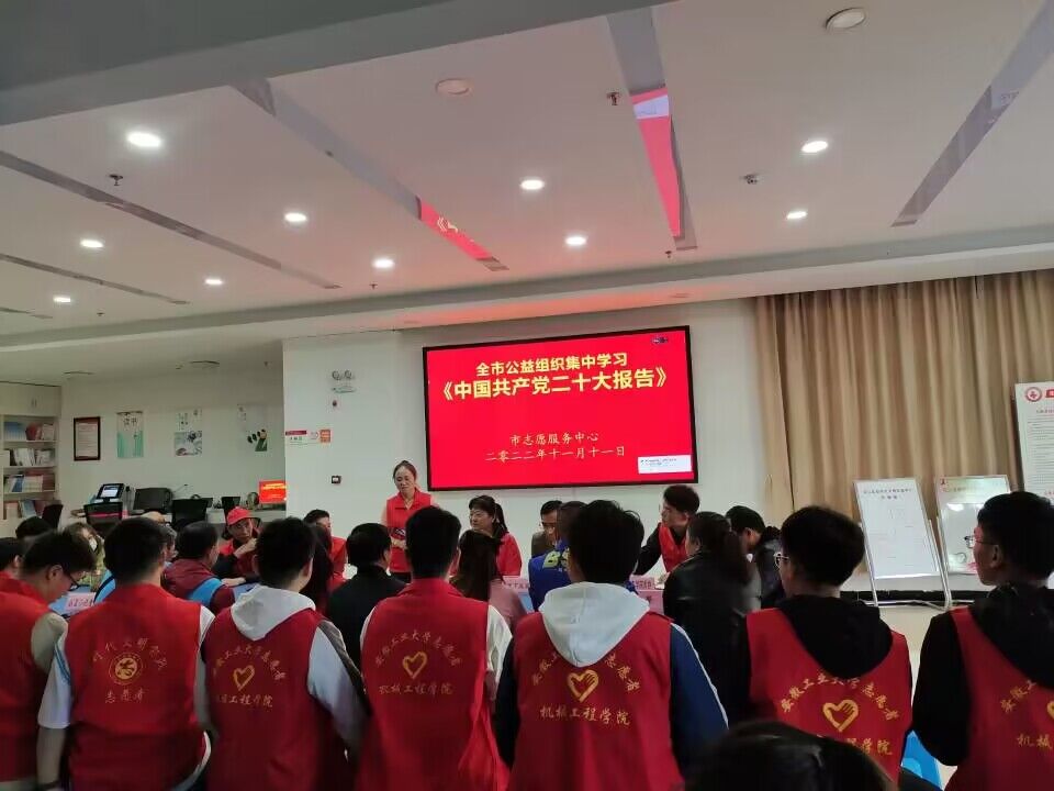 市志愿服务中心工作人员指出,党的二十大是在全党全国各族人民迈上全面建设社会主义现代化国家新征程、向第二个百年奋斗目标进军的关键时刻,召开的一次十分重要的大会。学习宣传贯彻党的二十大精神是全党全国各族人民当前和今后一个时期的首要政治任务。学习宣传党的二十大精神,青年员工是重要群体。党的二十大报告专门用一整段话对全党抓好青年工作给予鲜明强调、提出明确要求,对青年一代给予热情鼓励、寄予殷切厚望,饱含深情、语重心长,充分体现了习近平总书记对青年和青年工作的高度重视、亲切关怀,必将极大激发广大青年爱党爱国情感,必将极大振奋青年一代奋斗热情。