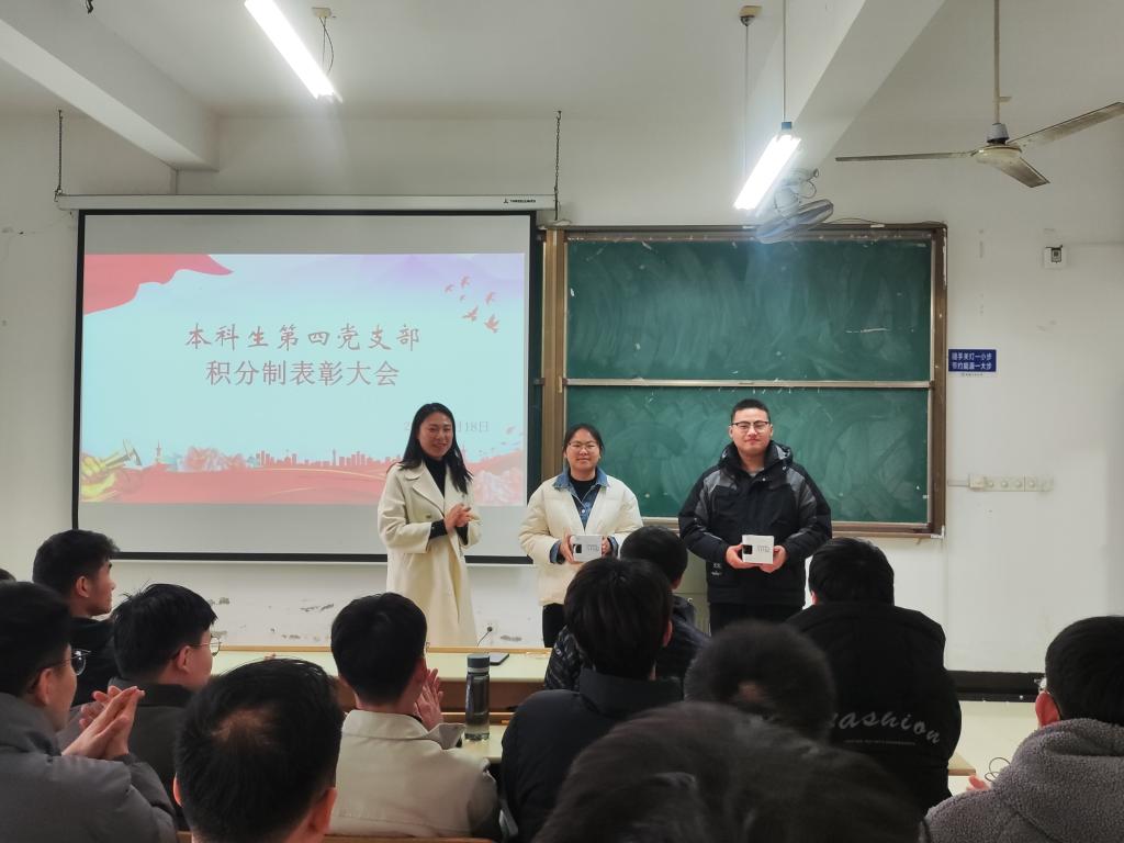 为进一步表彰先进,树立典型,激励广老员工党员充分发挥先锋模范作用。2024年3月19日,本科生第四党支部在机械楼405召开了积分制表彰大会,会议由支部书记濮莹萍主持,支部全体党员参加大会。