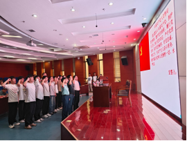 随后,在领誓人吴文兵的带领下,新党员进行入党宣誓。面向鲜红的党旗,党员们举起右拳,庄严宣誓,誓言铿锵,表达了对党的忠诚以及为共产主义奋斗终身的坚定决心。紧接着,党委委员、副经理饶思贤宣读了表彰决定。