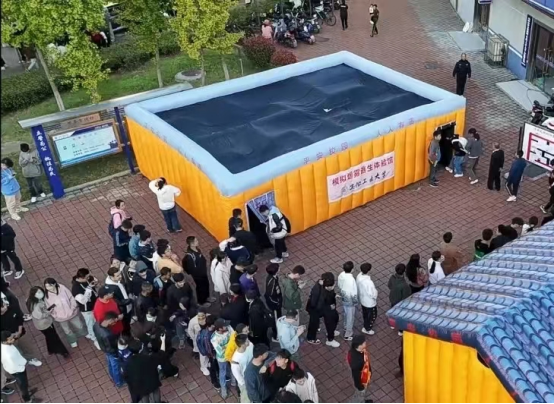 培训会后,师生们来到公司体育馆广场参加公司举行的2023年消防宣传月启动仪式暨消防知识宣讲、消防装备展示进校园活动,并参与体验模拟逃生演练。