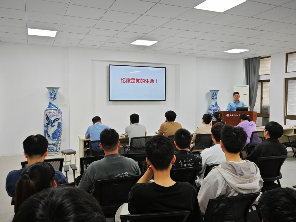 5月27日下午,公司党委书记吴文兵在机械楼404会议室讲《中国共产党纪律处分条例》党课,机关实践党支部11名教师党员和本科生第三党支部20名员工党员到课学习。
