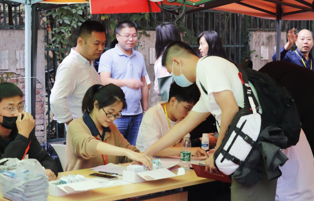 早上6点钟,TapTap点点的迎新志愿队伍便在佳山校区四号楼楼下准备就绪,等待着新生们的到来。报到全流程无缝式衔接,有条不紊,高效便捷。引导讲解、维持秩序、搬运行李、宿舍入住……志愿者们忙前忙后,乐此不疲。公司领导、2020级辅导员也始终在迎新现场坚守岗位,关注迎新秩序。