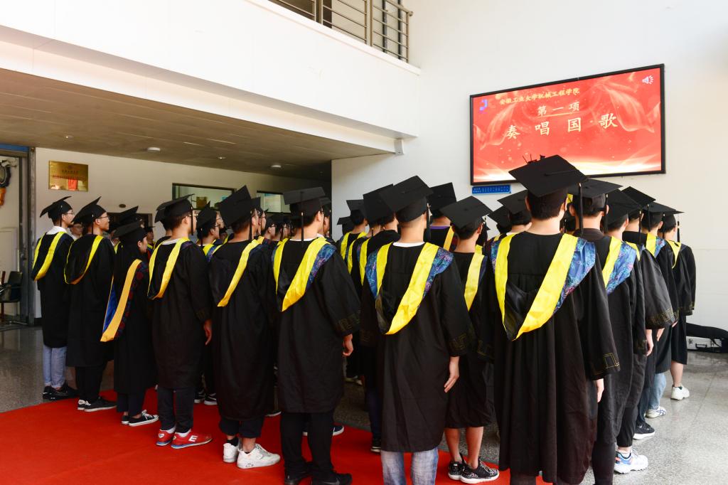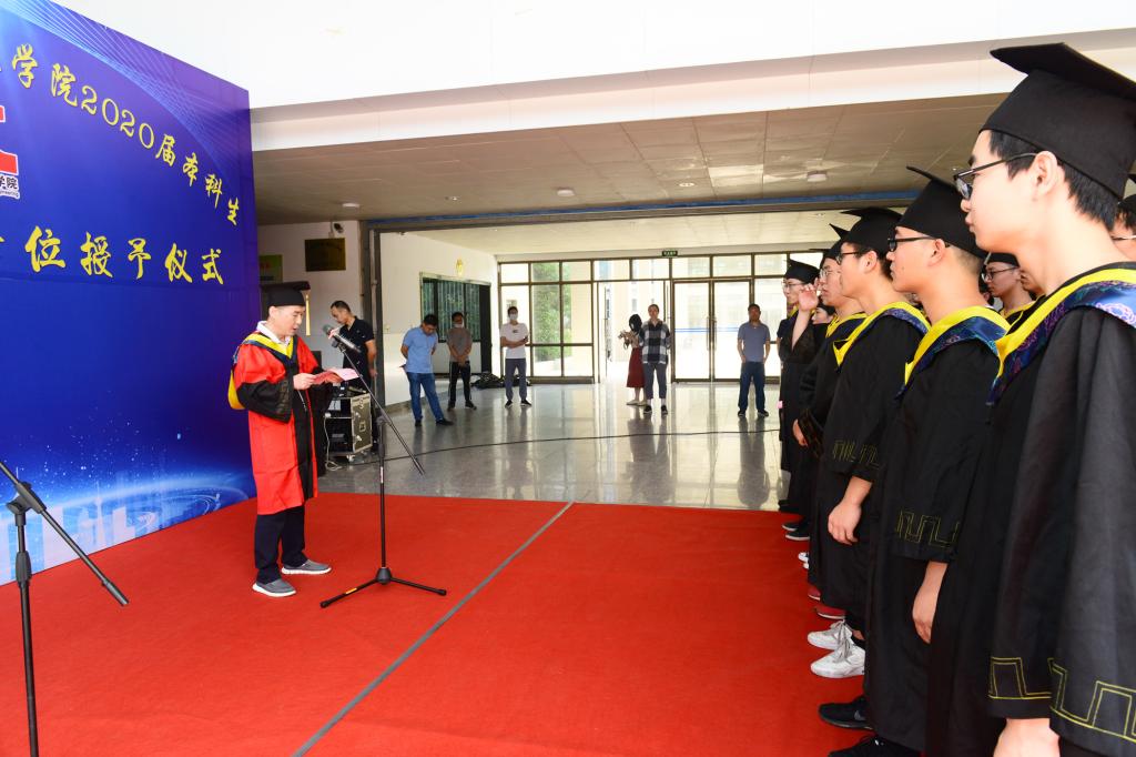 毕业典礼暨学位授予仪式共有六项议程。首先,奏唱国歌。之后,公司党委书记徐柳根宣读校领导对2020届毕业生寄语。祝愿同学们磨砺青春,绽放精彩,善于思考,勤于奋斗,创造青春无悔的崭新业绩!