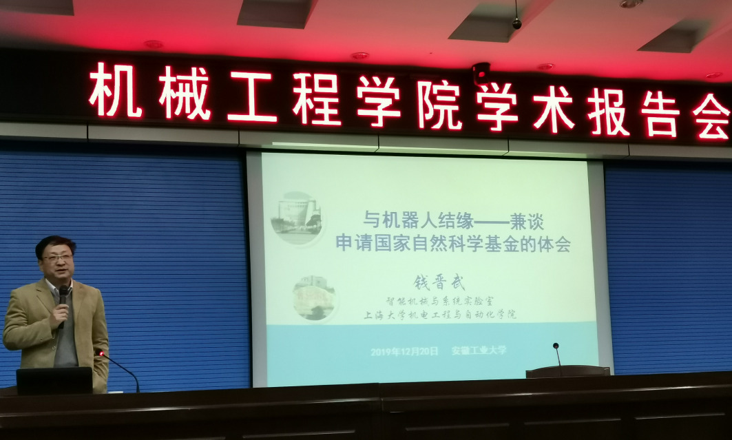 12月20日,上海大学钱晋武教授来公司为广大师生做了题为《与机器人结缘——兼谈申请国家自然科学基金的体会》的学术报告,报告由刘庆运主持。