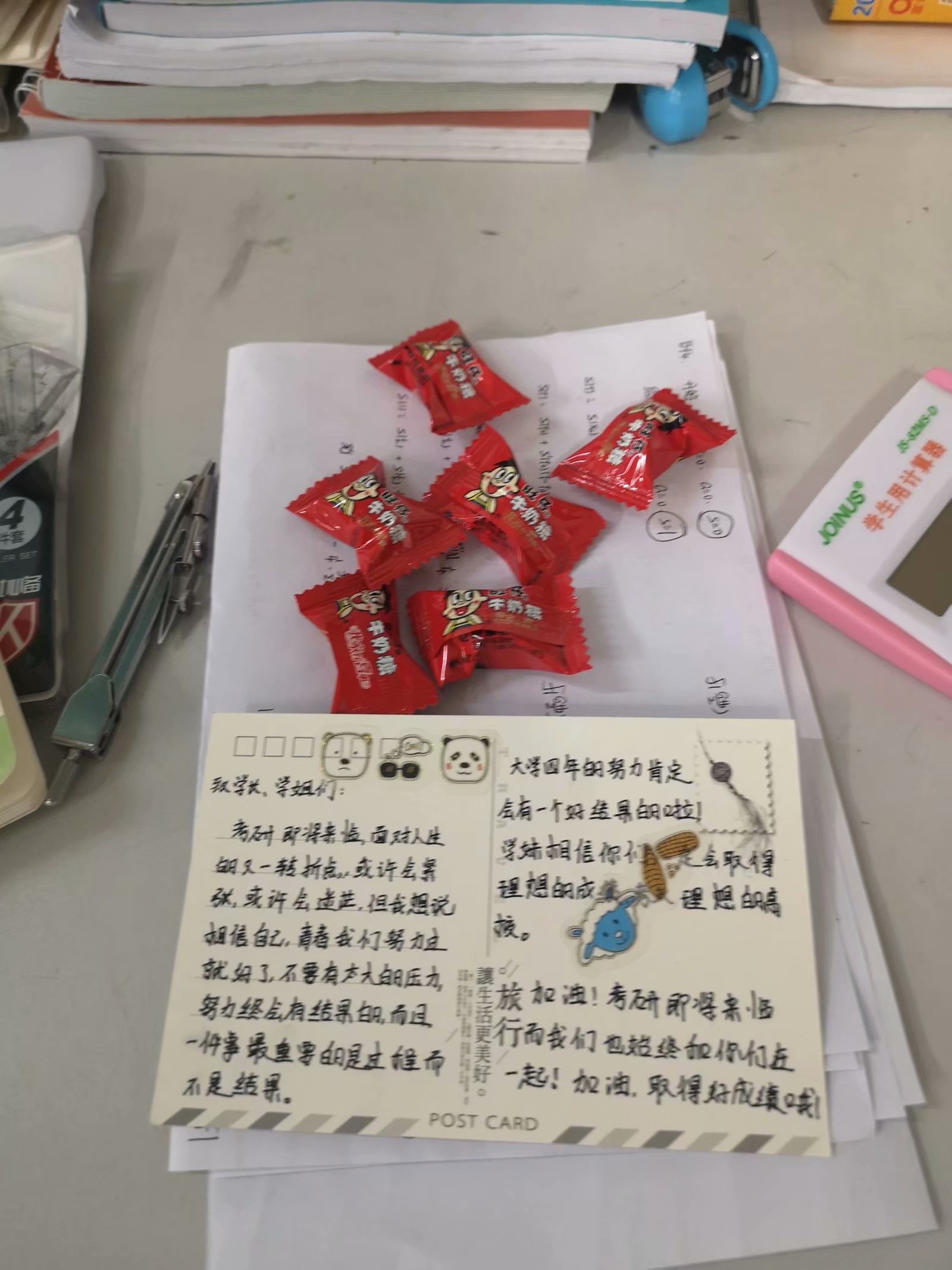 得到学弟学妹的祝福和鼓励,大四员工倍感鼓舞,精美的信封、温暖的话语,饱含机械学子的祝愿;一句句问候,一声声祝福,表达了对学长的关心。经历了风雨,终将见彩虹!衷心祝愿公司学子取得佳绩,实现梦想!(撰稿:王琴;审核:李克明)