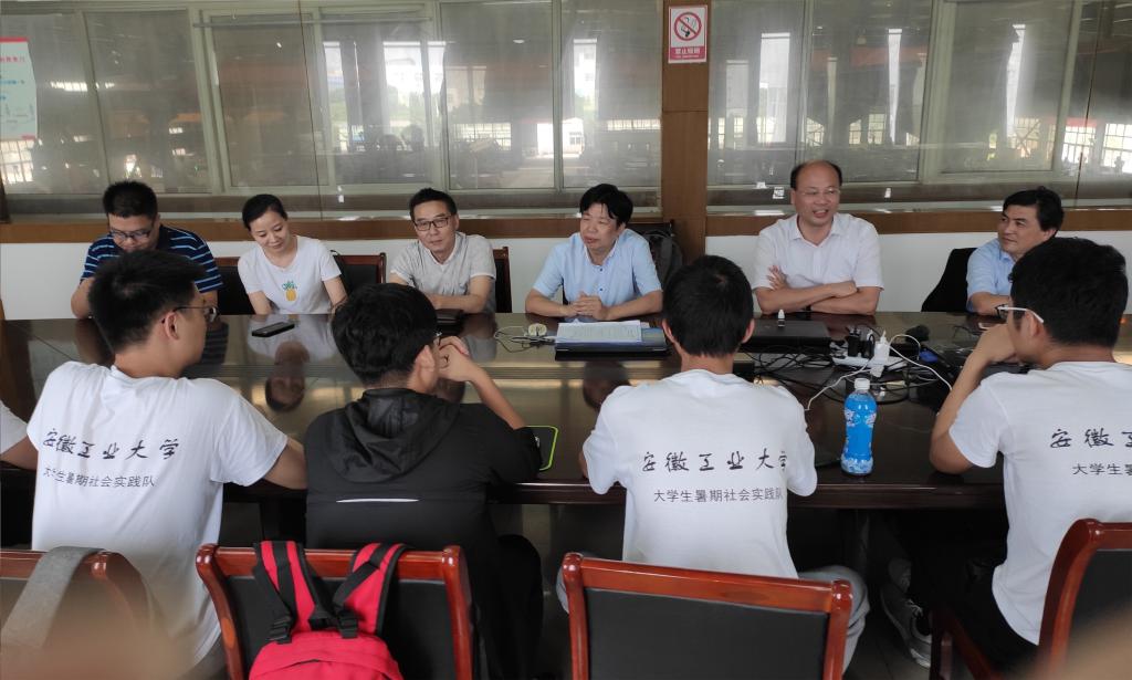 7月17日,公司党委常委、组织部部长赵保平,公司党委书记徐柳根、经理王孝义、公司党委副书记、副经理李克明在院团委书记王琴和2016级辅导员董春辉的陪同下,先后赴马鞍山市双益机械制造有限公司和海思达机器人有限公司亲切慰问了公司暑期社会实践团队,并为队员们送上了慰问品。