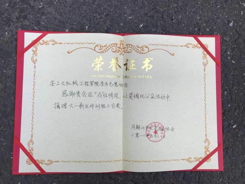 9月25日至28日,机械工程公司青年志愿者协会开展了“携手凡星会,回收军训蓝”活动,此次活动以“勤俭,节约,奉献,友爱”为主题,18级机械学子都积极投身于军训服装的回收中去。 最终,机械公司共回收军训服装200套。9月30日,凡星公益协会会长甘国庆亲自来到佳山校区进行军训服装的接收工作,并为机械公司青年志愿者协会颁发荣誉证书。