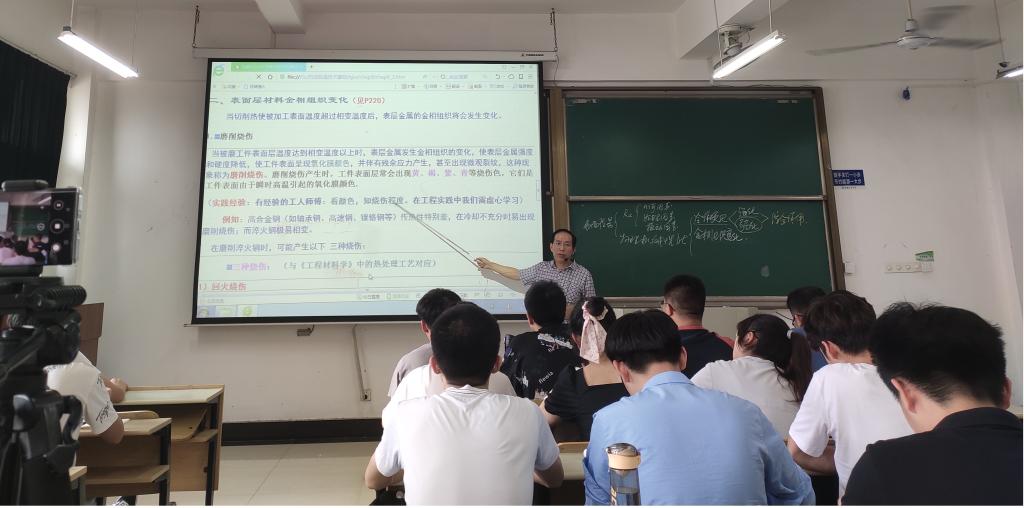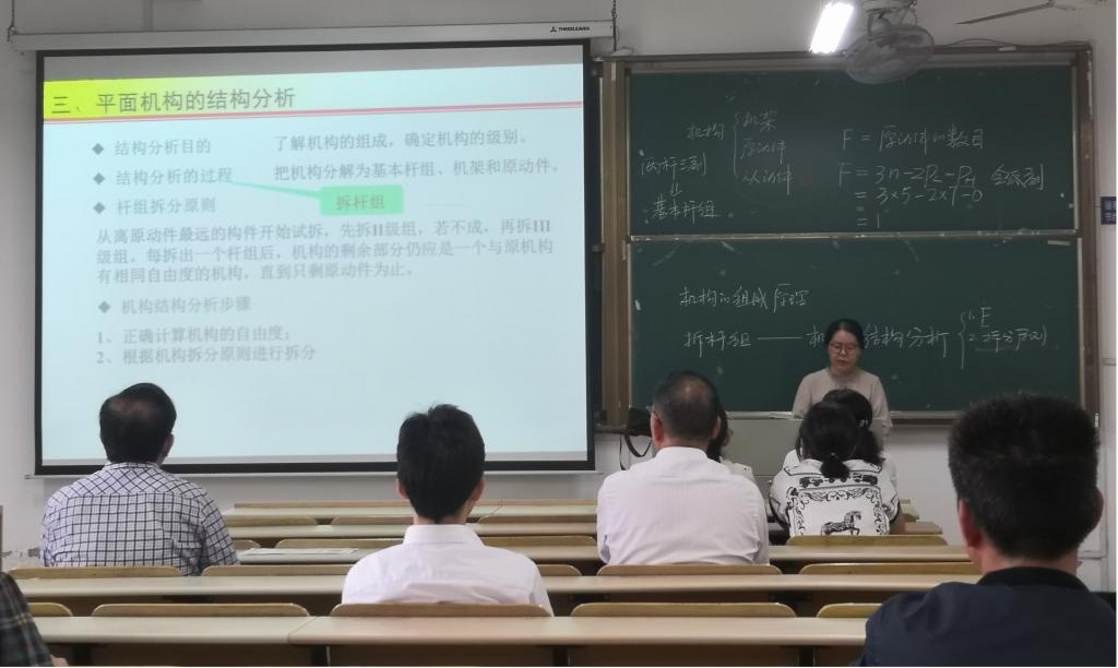 本次示范课,由公司省级课程思政示范项目课程负责人进行率先示范,30号上午10:00第三节课《机械制造技术基础A》,由汪永明老师主讲,在讲授机械加工后的表面层物理机械性能时,他引导员工要学会用辩证的思维考虑问题,在讲授切削金属工件的冷硬现象时,他引导员工一定结合实际,用整体的、全面的、系统的观点来看待问题,巧妙地将课程思政融入机械制造的课程当中。30号下午14:30,因本学期《机械原理》课程已结束,路曼老师特地为公司教师准备了一节精彩的课程思政示范课,她讲授的内容是机构的组成原理及结构设计,通过一个教学案例-简单摆动颚式破碎机和复杂摆动颚式破碎机的机构组成比较,前者机构复杂、效率较低,而后者机构简单、效率高,将机械创新设计、科技创新等思政元素自然地融入到机构设计中。