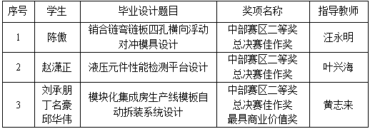 公司首次组织9个队参与此项赛事,共有3个参赛队获赛区二等奖并入围总决赛,最终三个队均获决赛佳作奖,其中,黄志来老师指导的毕业设计作品在决赛经大众和专家评选斩获“最具商业价值奖”(全国仅10项,2000元奖金/项)。公司获奖汇总如下表。