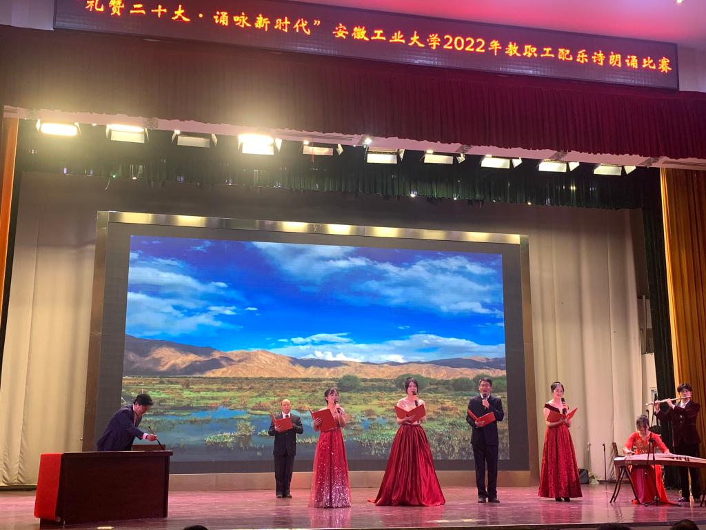 11月25日晚,由校工会主办的教职工“礼赞二十大·诵咏新时代”配乐诗朗诵比赛在秀山校区老员工活动中心举行,机械分工会参赛团队以总分第一,荣获一等奖。