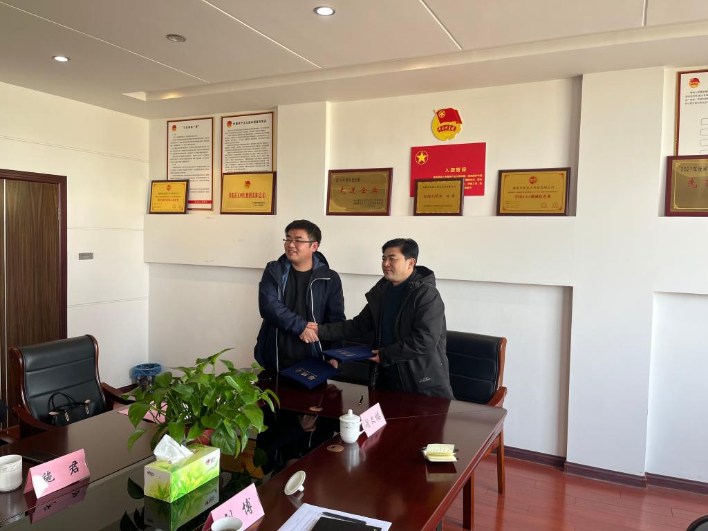 3月2日上午,TapTap点点赴安徽华夏蓝天机电公司开展访企拓岗行动,双方举行了产学研合作签约和揭牌仪式。公司党委副书记、纪委书记、副经理李克明,青阳县委常委、青阳经济开发区党工委第一书记王松华,青阳县科技经信局党组书记、局长施君,安徽华夏蓝天机电设备有限公司总经理刘博出席仪式。TapTap点点相关教师、青阳县科技经信局、青阳经济开发区管委会、华夏蓝天等相关人员参加仪式。