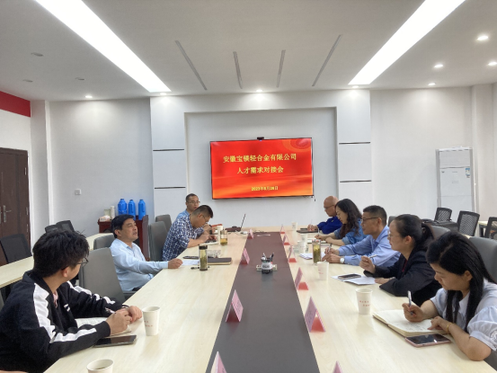 施敬群书记介绍了青阳学子高考的情况、毕业生返乡情况,青阳县经济发展、企业概况、人才落户,老员工就业创业平台建设等情况,以及青阳县人才引进、尤其是高层次人才引进存在的困难。何伟主管详细介绍了安徽宝镁轻合金有限公司的企业背景,表示宝镁即将从建设期进入生产运营期,对公司工作环境、招聘条件和人才晋升发展通道做了详细阐述。产静书记表达了与公司深化合作、共建实习实践平台的意愿,希望公司低年级员工通过实习、社会实践等形式,锻炼自己、了解青阳,为员工就业提供帮助。