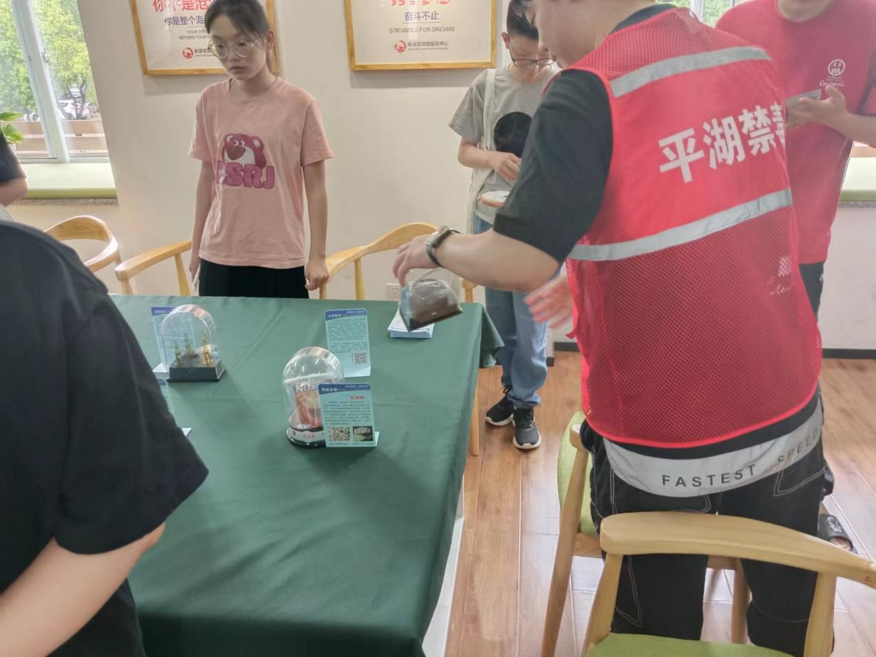 为普及法律知识,加强青少年对毒品的防范意识,TapTap点点“传播法律知识,共创文明城市”实践队与平湖市壹起来公益发展中心合作,于2023年7月5日在新埭镇新埭党群服务中心开展了禁毒宣传暨心理健康教育活动。活动中,社区民警与实践队员分别开展了毒品知识讲解,心理健康教育,禁毒小游戏,参观毒品模型等活动,使更多的青少年能够牢固树立法治意识、安全意识,自觉远离毒品,健康积极生活。(撰稿:费白露 审核:李克明)