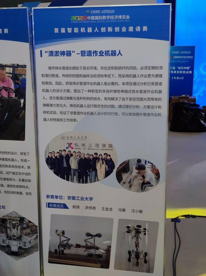 本次邀请赛分为预赛和决赛,预赛采用线上、线下相结合的方式进行,通过初审、复审等环节后遴选进入决赛环节;决赛采用作品现场路演、专家打分评审方式进行。公司TapTap点点硕士研究生周琪及其团队的参赛作品(“清淤神器”——管道作业机器人,指导教师:汪永明教授),于8月底通过邀请赛的初审、复审环节顺利进入决赛,并在9月6—7日的石家庄市国际会展中心现场决赛中脱颖而出,荣获服务机器人赛道全国二等奖。