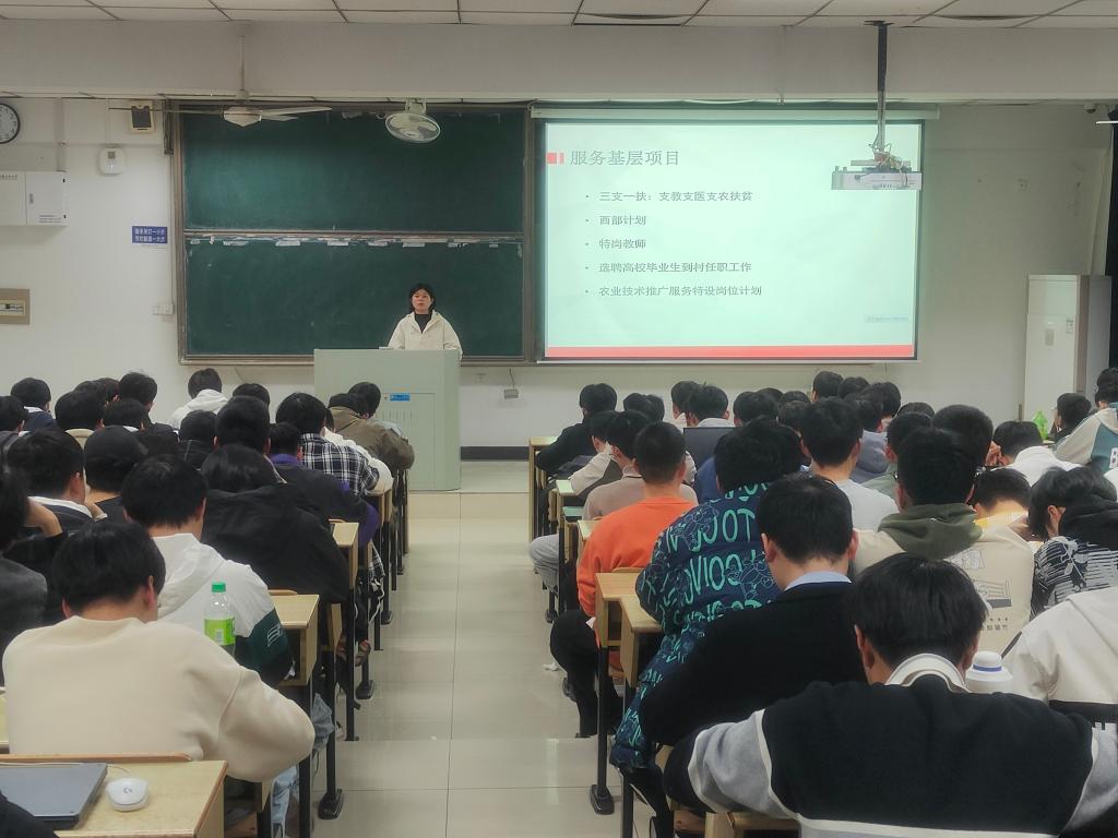 会上,陈洁向毕业生解读了三支一扶、西部计划、特岗教师、选聘高校毕业生到村任职工作等基层项目,重点提及近几年这几类项目对应届毕业生的需求,以及从经费保障、考研优势等方面强调服务基层项目给毕业生带来的发展和锻炼,鼓励有意向服务基层就业的同学报名参加,开阔视野,为以后的工作积累经验。