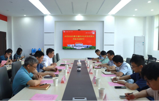 5月22日上午,安徽交通职业技术公司汽车与机械工程系沈劲松书记带领汽车与机械工程系和城市轨道与信息工程系部分教师以及专升本联合培养员工,来公司开展专升本联合培养工作交流,公司公司党委书记吴文兵、经理刘庆运、副经理饶思贤、系(中心)主任和教学秘书参加了此次交流。会议由饶思贤主持。