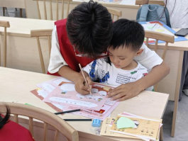 此次前往,员工给小朋友们送上许多文具,以“文具捐赠”活动为媒介,传递对乡村孩童教育的关爱暖情。文具中不乏水彩笔、画纸这些能绘画的工具,萌芽般的年纪,脑子里正充满天马行空的奇思妙想,他们拿到画笔便开始大展身手,向实践队员展示独属于小朋友的“魔法世界”。小小蜡笔穿花衣,红黄蓝绿多美丽。柔软的线条丰富交织,不一会,一幅幅可爱的绘画作品便诞生了。