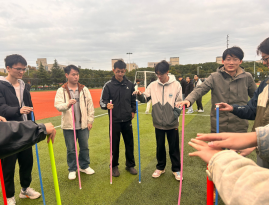 陈庆林简要介绍了开展团建活动的意义并宣布活动开始,2022级辅导员濮莹萍对各项团建活动的规则作了说明。随后两个年级分别依次开展“背夹球跑”、“三人两足绑腿跑”、“传递呼啦圈”、“不倒森林”四项游戏活动,通过一个个富有挑战性的游戏,不断提升同学们的团队意识、增强同学们的协作能力。