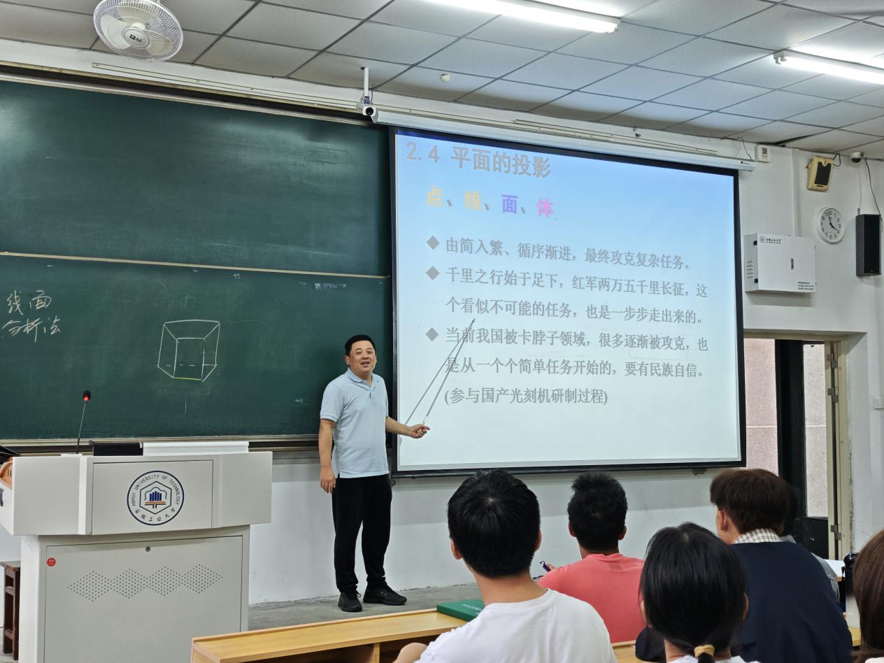 谈莉斌老师的授课内容为“基本立体投影”,通过类比点、线、面、体由简入繁的学习过程,介绍国家重大装备研制循序渐进、最终攻克复杂任务的研制流程。通过列举当前我国被卡脖子领域逐渐被攻克的具体案例,强调这些案例也是从一个个简单任务开始的,引导员工在学习过程中要脚踏实地学好每一个基础知识点。如港珠澳大桥总工程师林鸣带领团队攻克300余项专利,设计图纸堆高达1.5米,他们用智慧和汗水打造了这座世纪工程,体现了现代工程师的使命担当。“中国天眼”FAST射电望远镜馈源舱图样设计面临诸多挑战,工程师们通过不断创新和努力,成功完成设计,为我国的天文研究提供了有力支持。通过以上案例地讲解,鼓励员工在工程图学的学习和工作中,以当代大国工匠为榜样,将精益求精的精神内化为自己的职业追求,不断提高自己的专业水平。