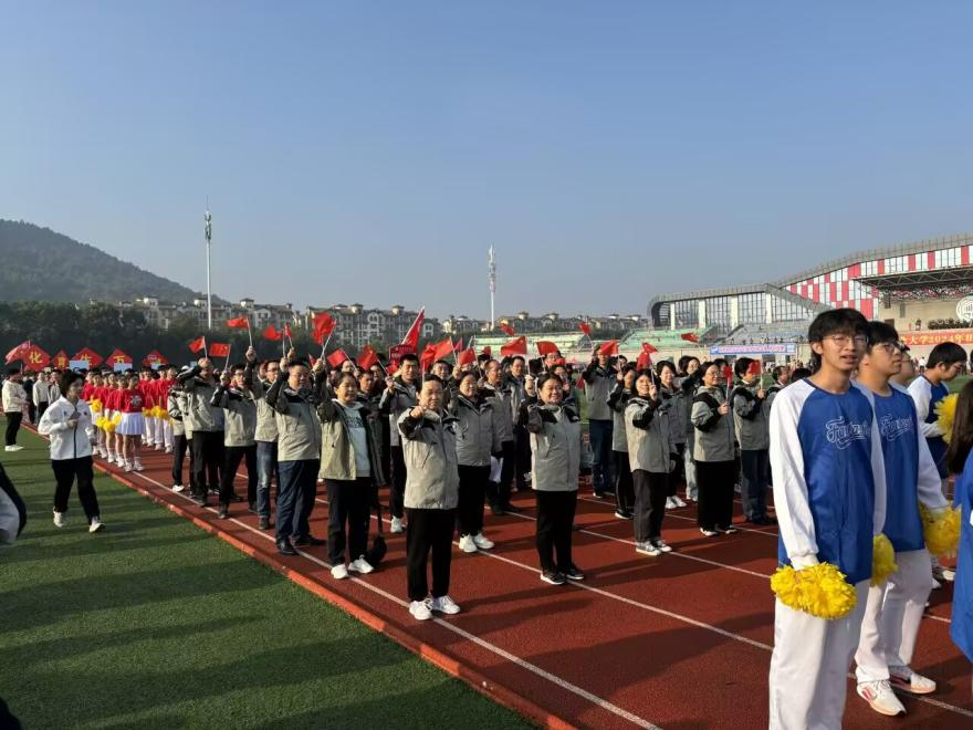 教师组50余名教职工踊跃参与径赛、田赛及集体趣味项目等46个角逐项目。其中,张菊花、高培青、王秀珍默契配合摘得女丙地滚球团体桂冠,高佳篷、袁晖、彭勇刚、张亚萍协作攻坚夺得男子同舟共济第一名,吴文兵、涂德浴、张兴权等在男丙手榴弹团体赛中斩获季军,另有4×100米接力、定点投篮、拔河等多个项目跻身前八。员工组同样表现抢眼,60名员工组成的啦啦操队伍以整齐有力的动作、青春昂扬的姿态成为赛场边一道亮丽风景线。80余名运动员在竞技项目中敢打敢拼,吴晓敏同学摘得女子100米冠军、女子跳远第四名,曾庆栋在男子100米赛道上斩获季军,唐健夺得男子1500米亚军,米斌、焦子峥、季家伟、张冬阳等多名学子在各自项目中跻身前八。