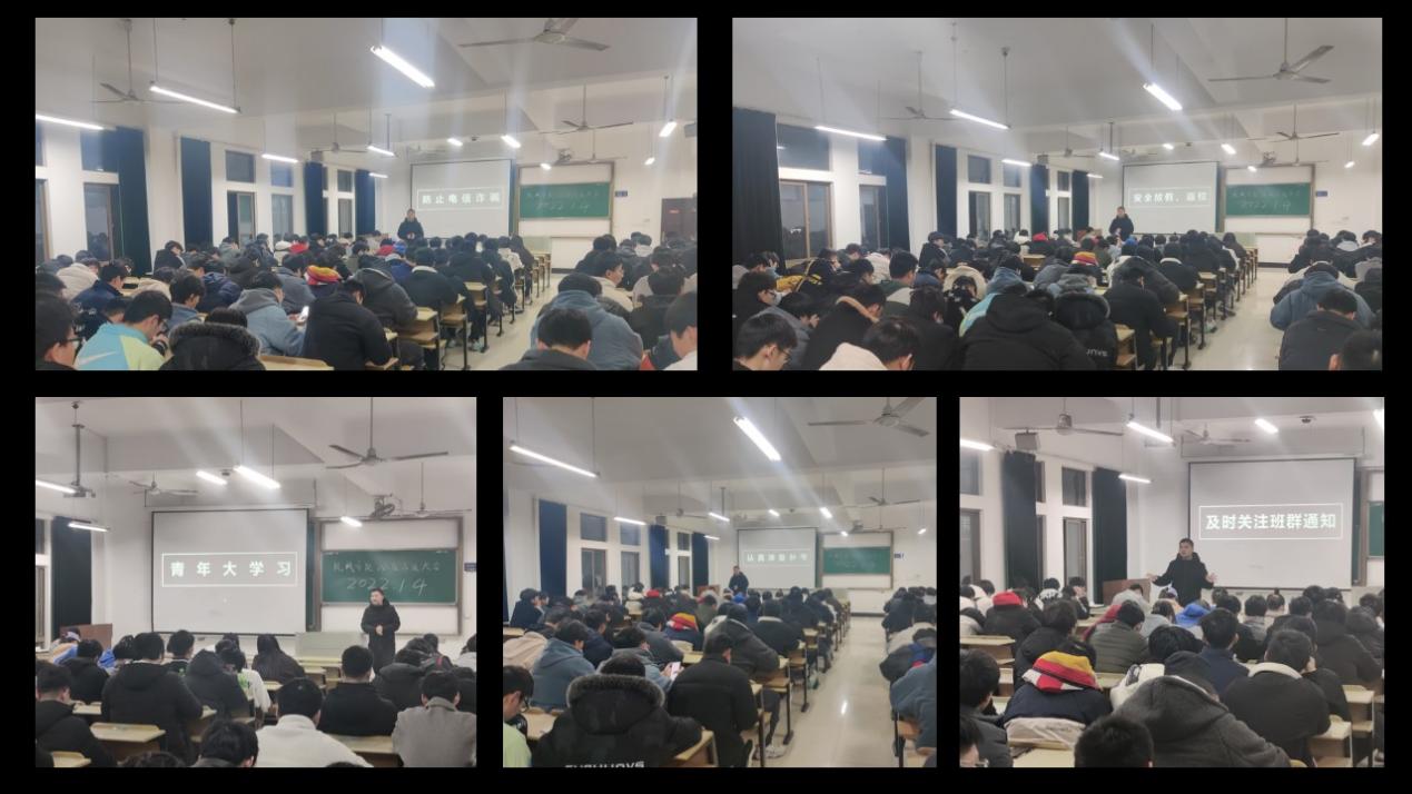 汪辉从防范电信诈骗、诚信备考、青年大学习、安全放假和返校、假期合理安排时间认真学习等方面展开。详细分析本学期机械学子遭遇电信诈骗的案例,再次强调员工要提高防诈意识和能力。举例分析教务处公布的期末考试违纪事实,警示员工要认真复习、诚信备考。强调全体员工每周都要坚持学习青年大学习,加强自身的政治理论学习。提醒员工放假和下学期开学相关注意事项,做好个人人身和财产安全防护。叮嘱员工合理安排寒假时间,挂科的同学要认真复习,准备下学期的补考。