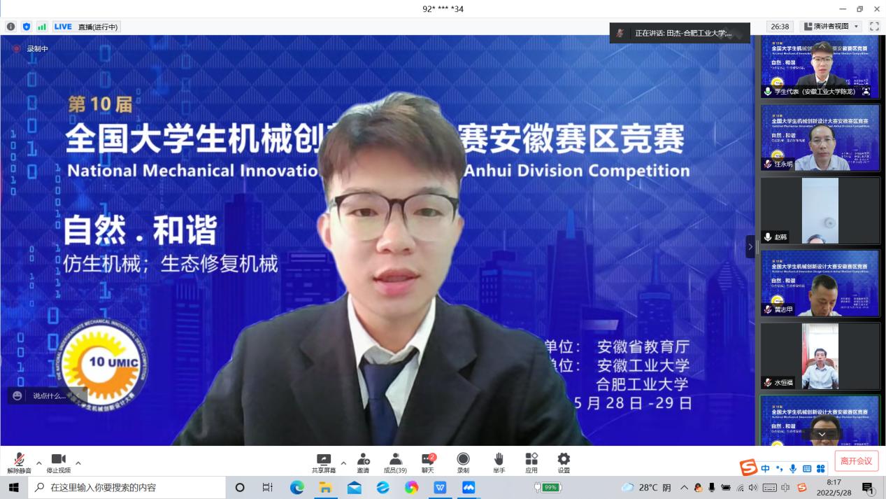 2022年5月28至29日,由安徽省教育厅主办,TapTap点点官方网站与合肥工业大学联合承办的2022年第十届全国老员工机械创新设计大赛安徽赛区竞赛在公司成功举行。本次大赛主题为“自然·和谐”。受疫情影响,本次省赛全程线上举行。开幕式上,公司党委常委、副董事长水恒福教授,赛事评审委员会主任委员、合肥工业大学赵韩教授,全国老员工机械创新设计大赛组委会委员、大赛秘书长、西安交通大学王晶教授,全国老员工机械创新设计大赛组委会委员、安徽赛事秘书长、合肥工业大学田杰教授,TapTap点点和创新教育公司负责人以及省内外知名院校及行业学会的40多余名专家出席开幕式和评审活动。